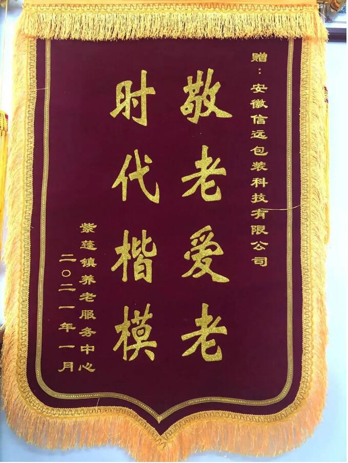 春節(jié)前公司工會(huì)委員會(huì)一行人來到肥西縣紫蓬鎮(zhèn)敬老院,向他們表達(dá)了節(jié)日的慰問并為孤寡老人送去了老人鞋、食用油等生活必需品。公司的付出與關(guān)懷得到了紫蓬鎮(zhèn)敬老院的高度贊揚(yáng),特送來錦旗以示感謝。古語有云“老吾老以及人之老”,信遠(yuǎn)人用自已的實(shí)際行動(dòng)譜寫了一首動(dòng)人的敬老愛老之歌,而這面鮮紅的錦旗是對(duì)他們無私奉獻(xiàn)的最高褒獎(jiǎng)。安徽信遠(yuǎn)將一如既往地在敬老愛老的道路上繼續(xù)奉獻(xiàn)。
