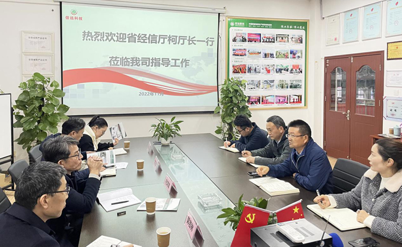 11月22日,安徽省經(jīng)信廳黨組成員、副廳長柯文斌,省經(jīng)信廳工業(yè)互聯(lián)網(wǎng)處副處長劉三新, 合肥市經(jīng)信局工業(yè)互聯(lián)網(wǎng)處處長郭吉林,省經(jīng)信廳工業(yè)互聯(lián)網(wǎng)四級(jí)主任科員汪沁紫一行來到安徽信遠(yuǎn)包裝科技有限公司進(jìn)行專題調(diào)研。信遠(yuǎn)科技董事長倪合青及公司相關(guān)領(lǐng)導(dǎo)熱情接待了柯廳長一行。