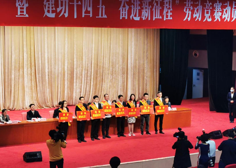 2021年4月30日,熱烈祥和的合肥市政府禮堂內(nèi),正在舉行慶?!拔逡弧濒摺敖üκ奈?奮進(jìn)新征程”勞動(dòng)競(jìng)賽動(dòng)員大會(huì)。省委常委、市委書(shū)記虞愛(ài)華,市委副書(shū)記、市長(zhǎng)羅云峰等市領(lǐng)導(dǎo)端坐在主席臺(tái)上。伴隨著雄壯的頒獎(jiǎng)進(jìn)行曲、主持人鏗鏘有力的誦讀著五一勞動(dòng)獎(jiǎng)?wù)芦@得者的名字,獲獎(jiǎng)?wù)邆兎纸M上臺(tái)接受領(lǐng)導(dǎo)頒獎(jiǎng)。此時(shí)熱烈的掌聲響徹整個(gè)禮堂,耀眼的鎂光燈照亮著每一位獲獎(jiǎng)?wù)叩哪橗嫞瑓R聚成一首致敬勞動(dòng)者的贊歌。這首贊歌里的主人公就有來(lái)自信遠(yuǎn)科技的電氣工程師——王聲根。