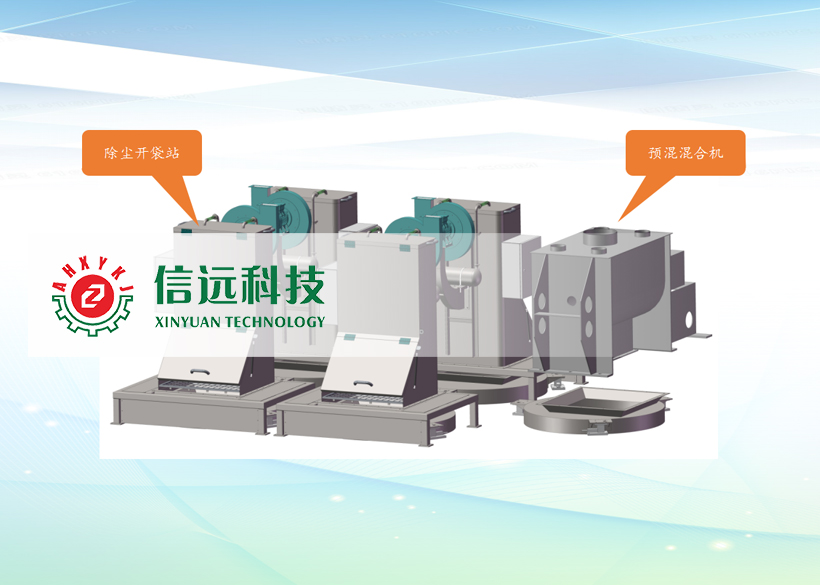 全自動粉劑水溶肥生產(chǎn)設備中投料預混系統(tǒng)系統(tǒng)分為除塵和預混兩大系統(tǒng)。