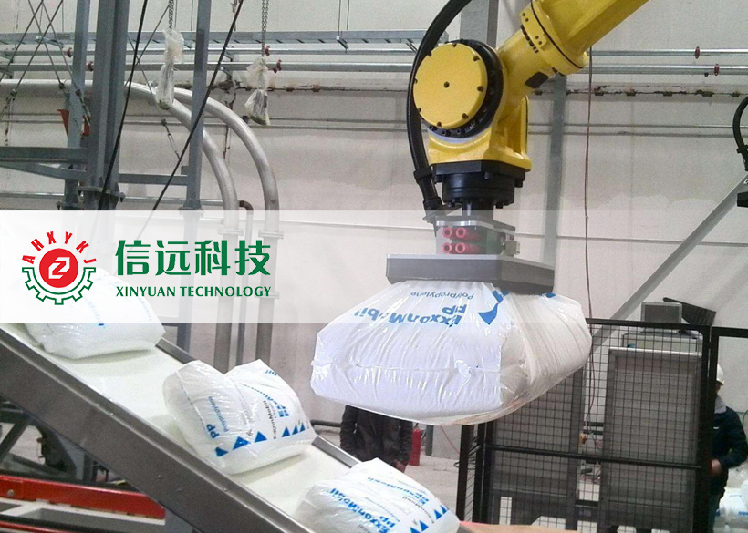 信遠(yuǎn)科技新一代全自動破包機,支持前端配套連接拆垛機器人進行無人化作業(yè)。拆垛機器人通過模仿人手和手臂的動作功能,按照設(shè)置的程序來抓取搬運待拆的包裝袋,可以對不同袋裝堆垛進行拆垛工作,處理速度快。拆垛機器人和自動破包機組合而成的全自動拆垛破包一體化生產(chǎn)設(shè)備,將幫助用戶在安全場景下,實現(xiàn)更加快速的生產(chǎn)作業(yè)。
