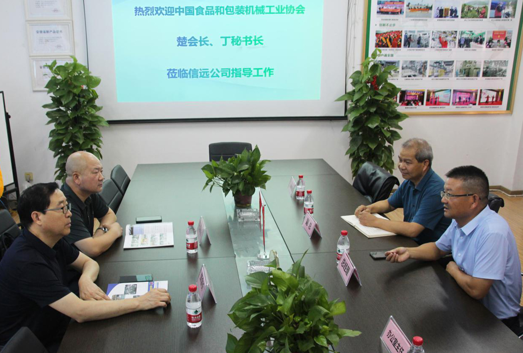8月11日上午,中國(guó)食品和包裝機(jī)械工業(yè)協(xié)會(huì)會(huì)長(zhǎng)楚玉峰,在秘書(shū)長(zhǎng)丁少輝的陪同下來(lái)到安徽信遠(yuǎn)包裝科技有限公司考察調(diào)研。信遠(yuǎn)科技董事長(zhǎng)兼總經(jīng)理倪合青,常務(wù)副總經(jīng)理鐘慶柱,總經(jīng)辦主任胡思琪等公司領(lǐng)導(dǎo)熱情接待了楚會(huì)長(zhǎng)、丁秘書(shū)長(zhǎng)。
