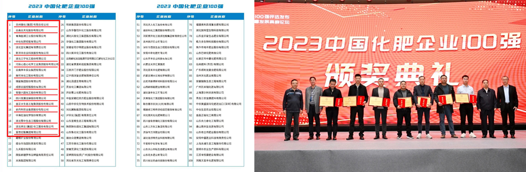 12月14日,由中國化工情報信息協(xié)會、中國化工信息中心、泰安市人民政府主辦,中國化肥信息中心、泰安市商務(wù)局(市投資促進(jìn)局)承辦的“2023(第十六屆)中國化肥100強(qiáng)評選發(fā)布暨中國化肥產(chǎn)業(yè)高質(zhì)量發(fā)展高峰論壇”在山東省泰安市盛大召開!本次會議以“加快培育世界一流企業(yè) 助力構(gòu)建高質(zhì)量發(fā)展”為主題,旨在發(fā)揮一流企業(yè)榜樣示范作用、聚焦于行業(yè)熱點、痛點,共同探討、推動我國化肥產(chǎn)業(yè)高質(zhì)量發(fā)展。會上,2023中國化肥百強(qiáng)榜單正式發(fā)布!其中,貴州磷化(集團(tuán))有限責(zé)任公司位列第一,云南云天化股份有限公司、青海鹽湖工業(yè)股份有限公司分別位列二三位。通過榜單評選,引領(lǐng)行業(yè)理性認(rèn)識新發(fā)展格局下面臨的機(jī)遇和挑戰(zhàn),引導(dǎo)企業(yè)主動適應(yīng)變革,實現(xiàn)轉(zhuǎn)型升級;加快培育具有行業(yè)引領(lǐng)力與全球競爭力的世界一流肥料企業(yè)集群。
