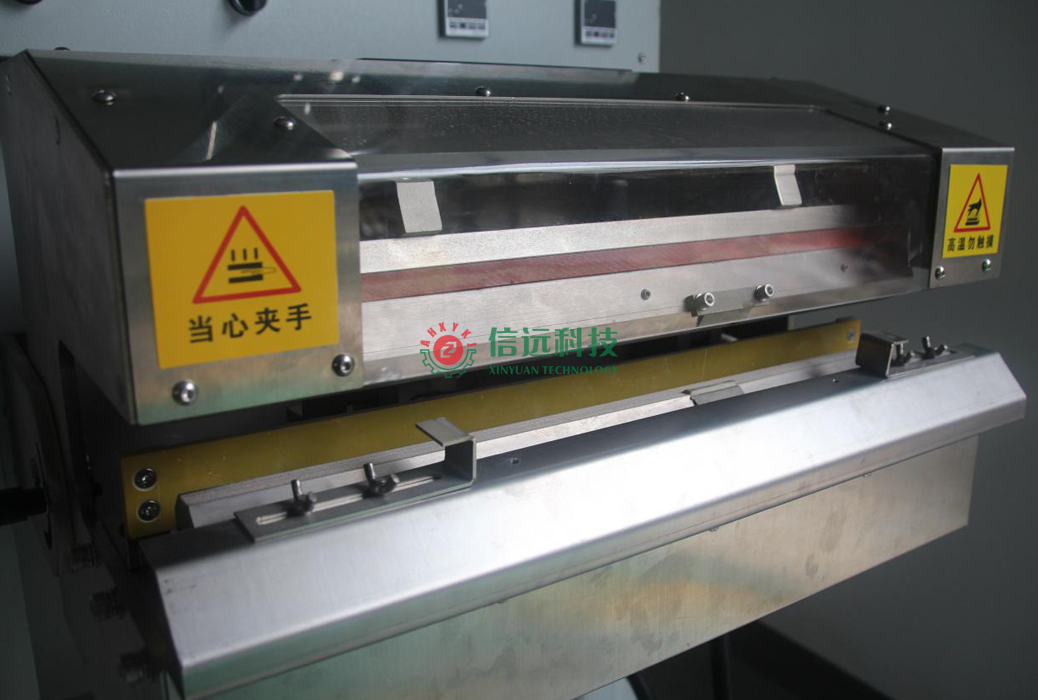 信遠(yuǎn)科技XY-M500/T型M袋熱封口機(jī),在使用過程中,要注意以下幾個(gè)事項(xiàng):1、加熱塊齒形表面要保持清潔,當(dāng)沾有包裝袋熔料后,要用專用銅刷清理;2、加熱塊表面溫度高,操作時(shí)手不要接觸加熱體,或?qū)⑹址湃爰訜釅K閉合區(qū)域,以免引起燙傷和機(jī)械擠壓傷;3、該機(jī)加熱體高度可以上下調(diào)節(jié),通過設(shè)備支架上的調(diào)節(jié)螺栓來實(shí)現(xiàn);4、氣缸的進(jìn)氣壓力可調(diào),可通過進(jìn)氣接口處的調(diào)節(jié)閥來調(diào)整。