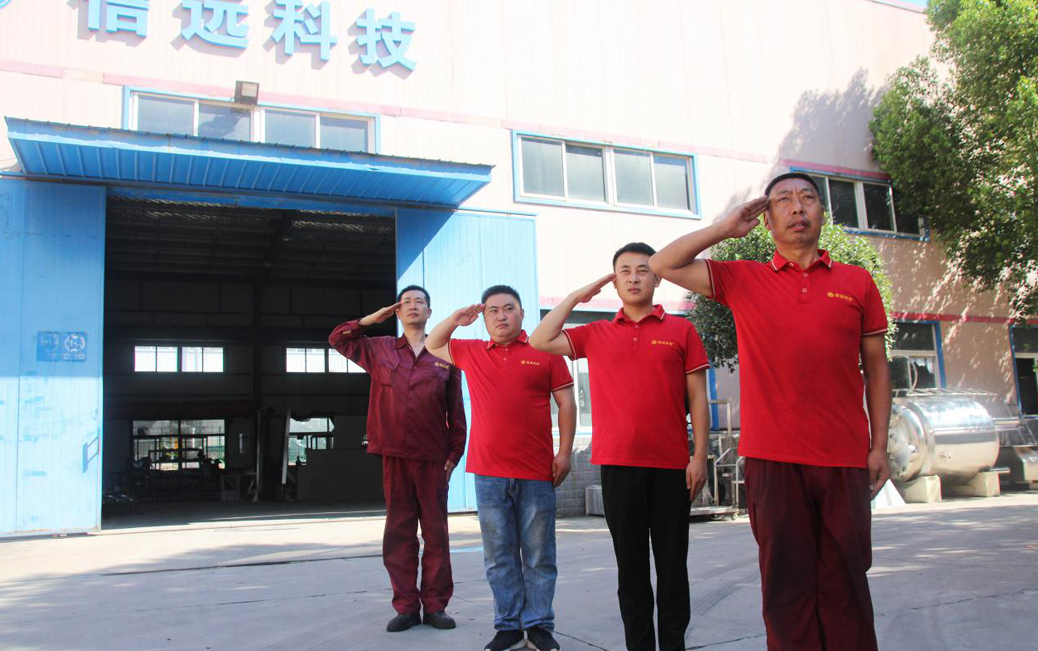 “立正! 向右看——齊!”隨著擔(dān)任指揮員的退伍老兵張解武的一聲號令,信遠(yuǎn)公司在廠的退伍老兵們一個個精神抖擻的站好隊列,重溫站軍姿、敬軍禮、走齊步等軍事科目,合唱了《團(tuán)結(jié)就是力量》、《咱當(dāng)兵的人》軍旅歌曲,退伍老兵們在此過程中個個神采飛揚,再現(xiàn)了軍人的風(fēng)采與本色。