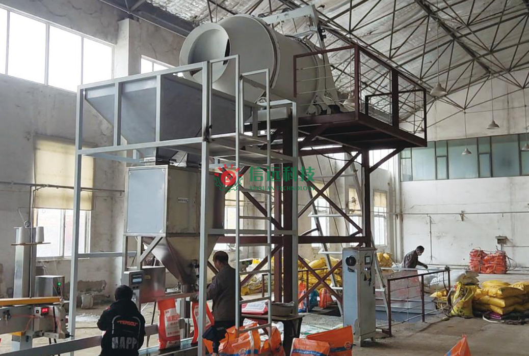 信遠科技研發(fā)制造的小型摻混肥設(shè)備,由主體設(shè)備和輔助設(shè)備兩大部分配置組成,主體設(shè)備包括:自動配料單元、自動攪拌混合單元、自動包裝單元,自動控制系統(tǒng);輔助設(shè)備包括:投料平臺、爬斗輸送機、皮帶輸送機、縫包機、氣泵、支架平臺等。該小型摻混肥設(shè)備由人工進行投料配料,爬斗提升機把配合好的物料輸送至混合機,混合均勻后進入定量包裝和封口輸送環(huán)節(jié),完成包裝成品。