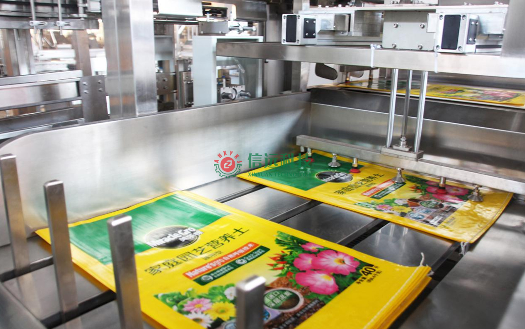 安徽信遠(yuǎn)包裝科技有限公司作為國內(nèi)知名的農(nóng)資農(nóng)化設(shè)備專業(yè)制造商,按約為該品牌營養(yǎng)土生產(chǎn)商提供了成套的自動化包裝機(jī)設(shè)備,該設(shè)備是一套給袋式重袋包裝系統(tǒng)。生產(chǎn)流程是配方原料通過計量料倉喂料至重袋包裝機(jī),在前端上袋機(jī)的配合下,自動完成取袋、上袋、套袋、夾袋、計量、充填、抱袋、振實(shí)等作業(yè);包裝機(jī)后端與縫包機(jī)相聯(lián),在導(dǎo)袋機(jī)構(gòu)和皮帶輸送機(jī)的配合下,自動完成移栽、導(dǎo)袋、折邊、縫合、剪線等工序,完成成品輸出。