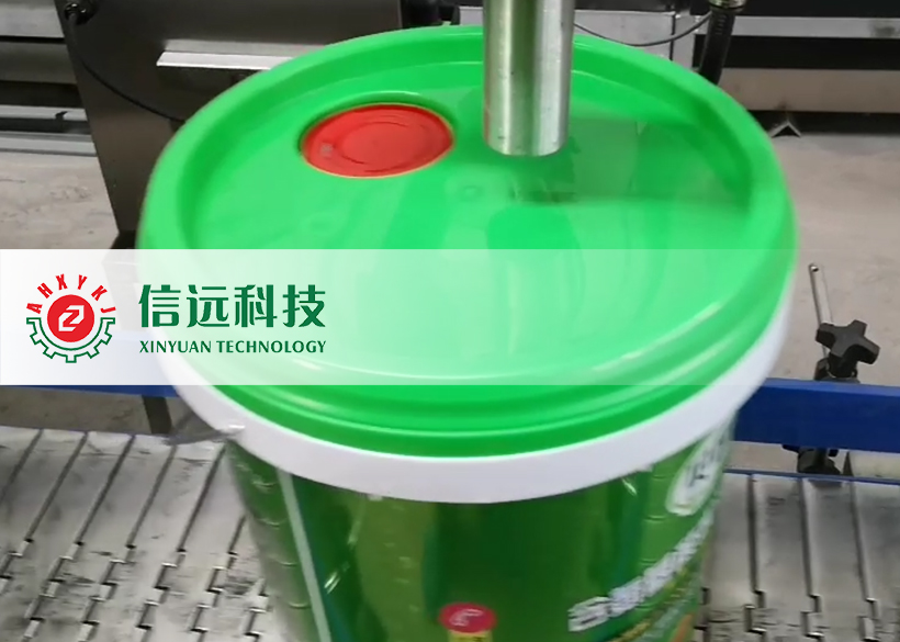 ■上蓋和旋蓋/壓蓋工段:配有全自動上蓋機,實現(xiàn)有序精準掛蓋上蓋。小口桶采用全自動抓旋式旋蓋機,可以根據(jù)桶蓋大小進行尺寸調(diào)節(jié)和擰蓋力度,兼容多種螺紋瓶蓋;廣口桶采用全自動滾壓式壓蓋機,根據(jù)不同尺寸的桶蓋,在主軸上調(diào)整對應(yīng)尺寸的螺母位置,即可正常封蓋,適用于各種國際通用的標準桶封蓋。旋蓋/壓蓋機構(gòu)運行穩(wěn)定,可以保證封蓋質(zhì)量和精密度。