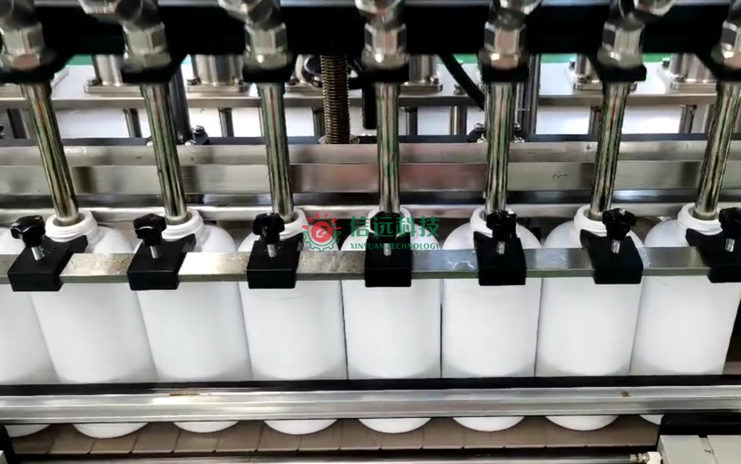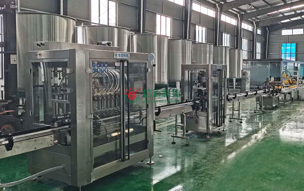 安徽信遠包裝科技有限公司設(shè)計制造的瓶裝液體肥灌裝碼垛生產(chǎn)線設(shè)備,是一套全自動化的灌裝碼垛系統(tǒng),由灌裝機、上蓋機、旋蓋機、鋁箔封口機、噴碼機、貼標機,封箱機、捆扎機和碼垛機器人等裝置組成,可以自動完成從裸瓶到整箱堆垛的流水線生產(chǎn)。灌裝機有不同的機型配置,灌裝頭數(shù)量也不同(有四頭、六頭、八頭、十頭等),可以灌裝100-1000ml容量的立式瓶液體肥,肥料生產(chǎn)廠家可以根據(jù)自己的產(chǎn)品產(chǎn)能需求和采購預算進行選配。